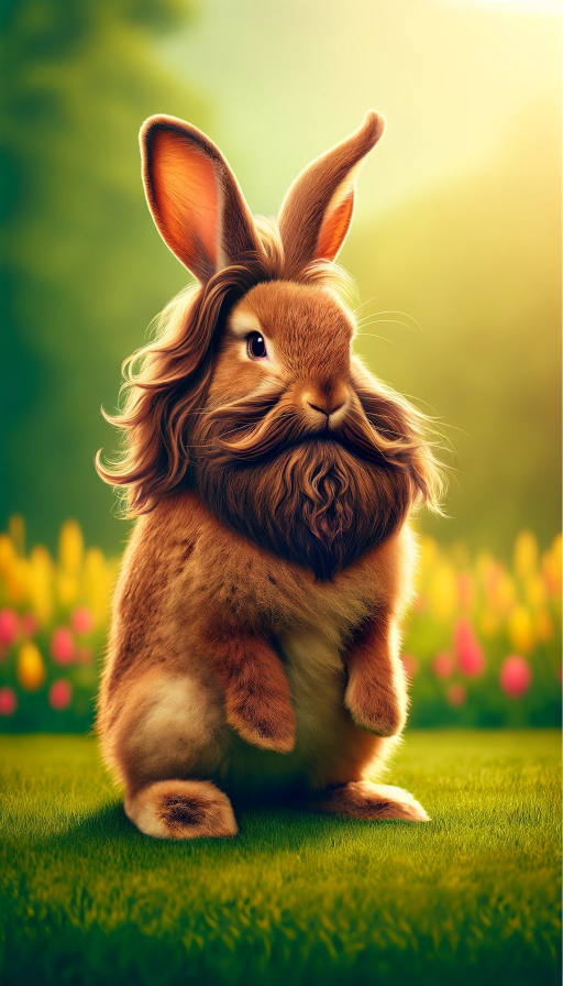 Prompt: Draw a tall brown rabbit with a full beard and long hair.